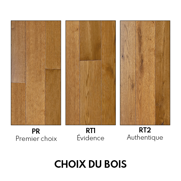 • Choix de bois : Premier choix-PR / Évidence-RT1 / Authentique-RT2