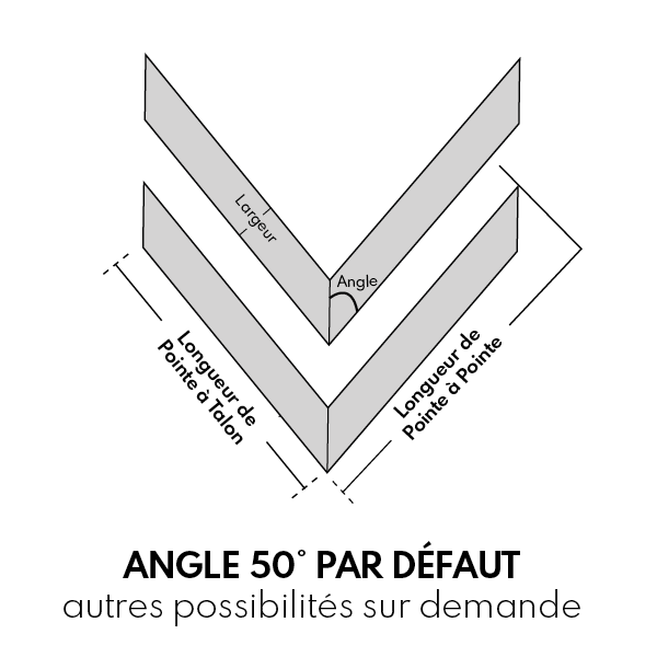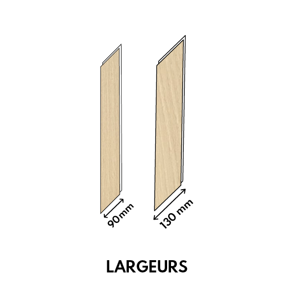 Avec leurs 600 mm de longueur, les lames offrent un équilibre parfait entre esthétique et proportions, pour un motif raffiné et intemporel. Disponibles en largeur 90 mm pour un rendu classique et élégant, ou en 130 mm pour une interprétation plus contemporaine et affirmée.