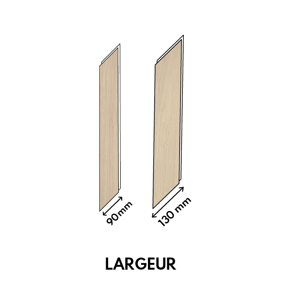Avec leurs 600 mm de longueur, les lames offrent un équilibre parfait entre esthétique et proportions, pour un motif raffiné et intemporel. Disponibles en largeur 90 mm pour un rendu classique et élégant, ou en 130 mm pour une interprétation plus contemporaine et affirmée.