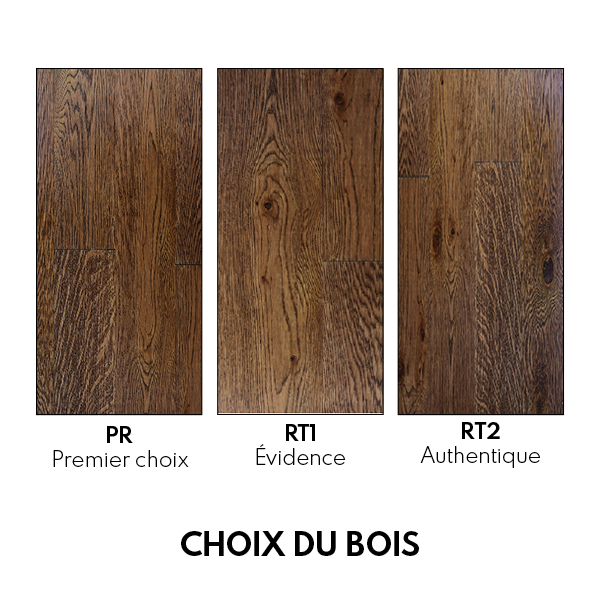 • Choix de bois : Premier choix-PR / Évidence-RT1 / Authentique-RT2