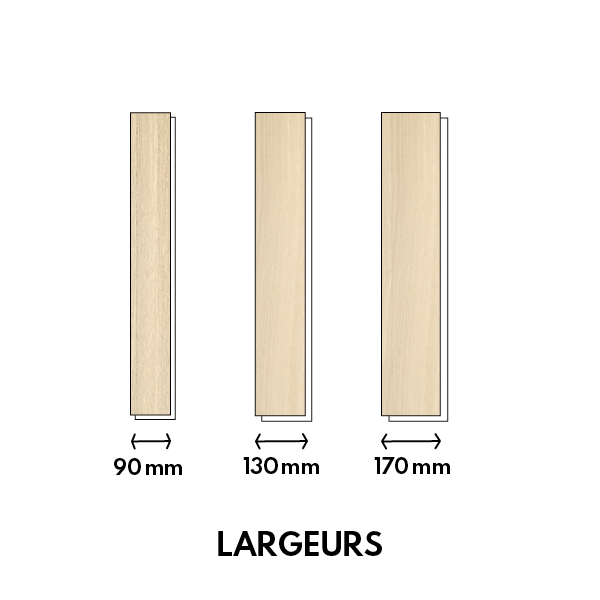 Choix premier, aspect homogène. Sans noeud, tout petits picots tolérés d'un diamètre maximum de 8mm. Couleurs claires. Non admis : aubier, gerces, altération biologique.