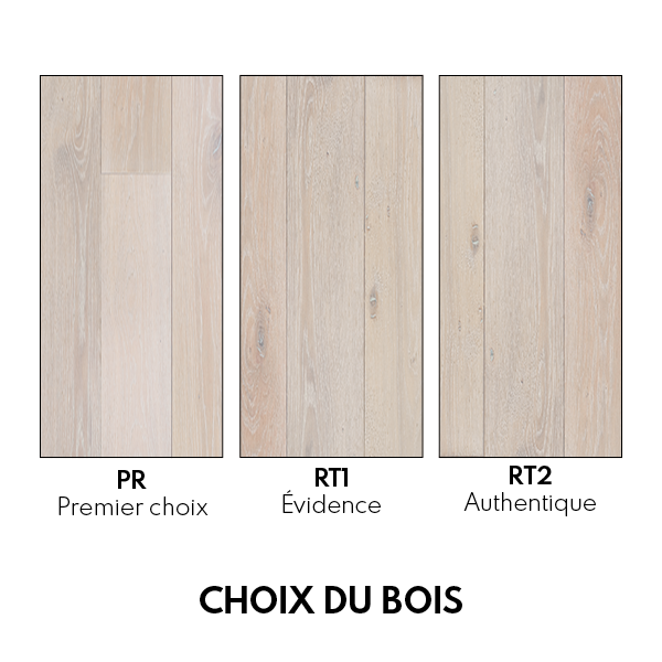 Le RT1 allie la beauté du premier choix avec quelques noues qui viennent apporter de la vie. C'est le choix nature par excellence. Noeuds d'un diamètre de 25mm maximum, aubier exclu. Livré rebouché et poncé. Non admis : aubier, gerces, altération biologique.