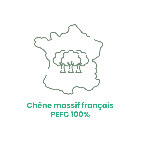 Naofloor est l’unique parquet massif démontable, réemployable et réutilisable, éco-conçu et fabriqué en France avec du chêne français PEFC 100%, 100% Bois de France et labellisé Origine France Garantie.
