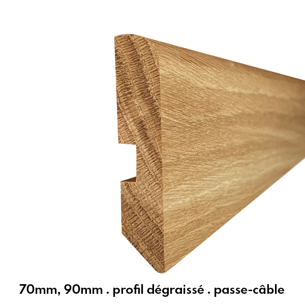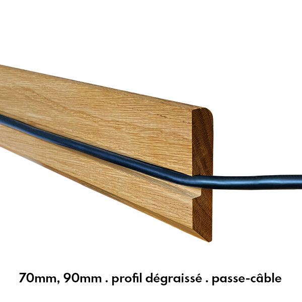 Enfin vos plinthes disponibles dans les mêmes couleurs que votre parquet. Pour un accord parfait avec votre parquet verni ou brut, pour trancher sur un parquet classique ou bien pour créer une harmonie... Inventez vos idées déco avec nos plinthes finies vernies usine !